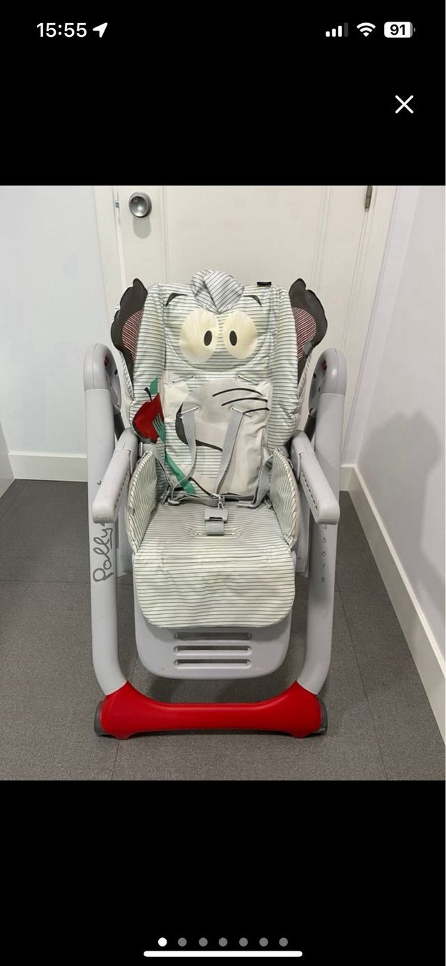 Detalles del productoEn buen estado de conservacion, reclinable en 3 posiciones y tambien 5 posiciones de alturas, incluye la mesa que va colgada en su parte trasera cuando no se esta usando pra poder plegarla