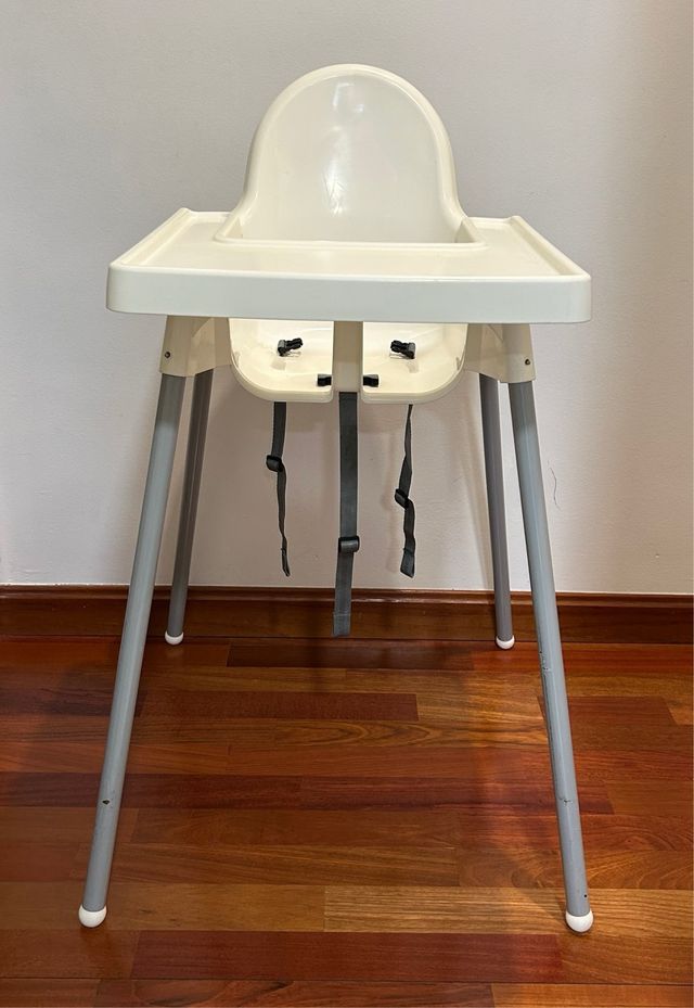 Detalles del productoTrona de bebé en color blanco y patas grises. Perfecta para las comidas.