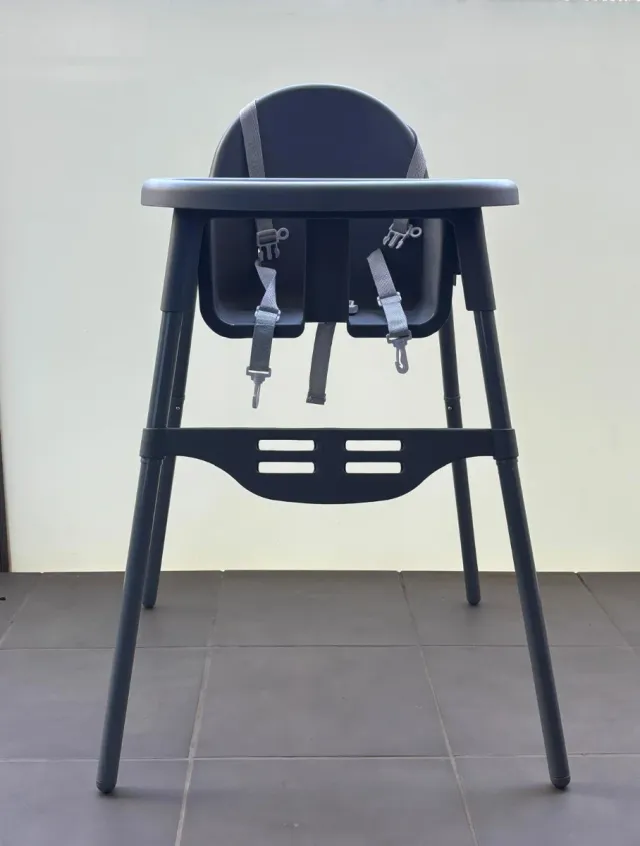 Detalles del productoTrona de bebé en color gris oscuro, ideal para las comidas.