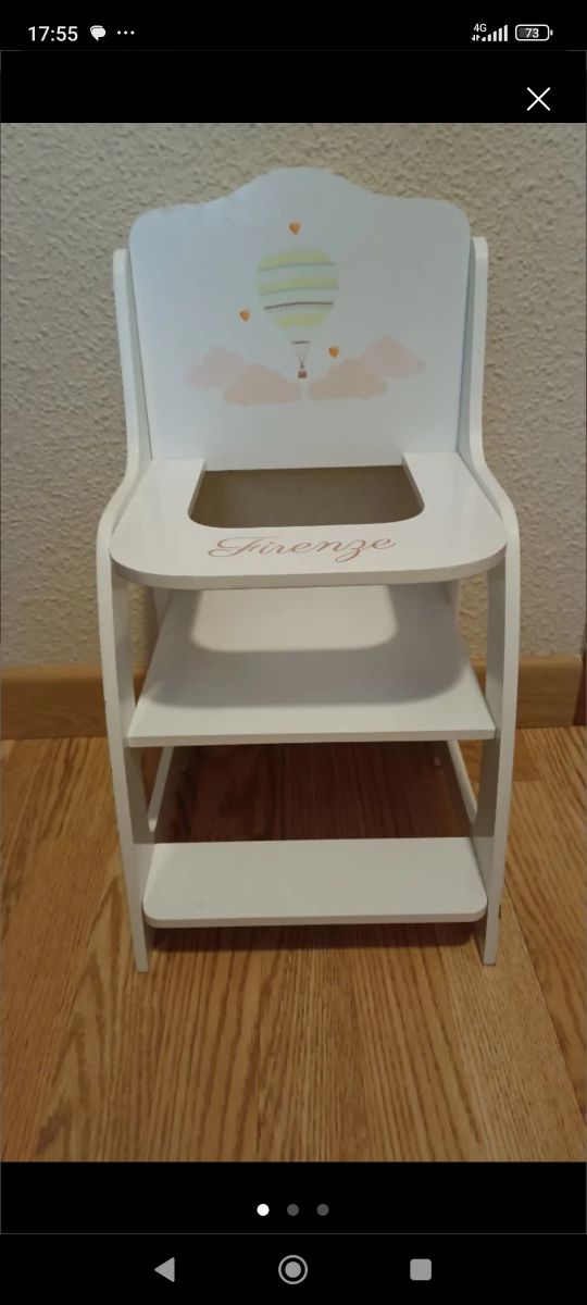 Detalles del productoPreciosa trona para bebé reborn, de madera blanca, con diseño de globo aerostático.