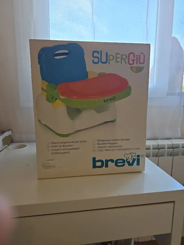 Detalles del productoTrona plegable de la marca Brevi, modelo Supergiù, apta para bebés a partir de 6 meses. Es un asiento elevador práctico y fácil de transportar.
