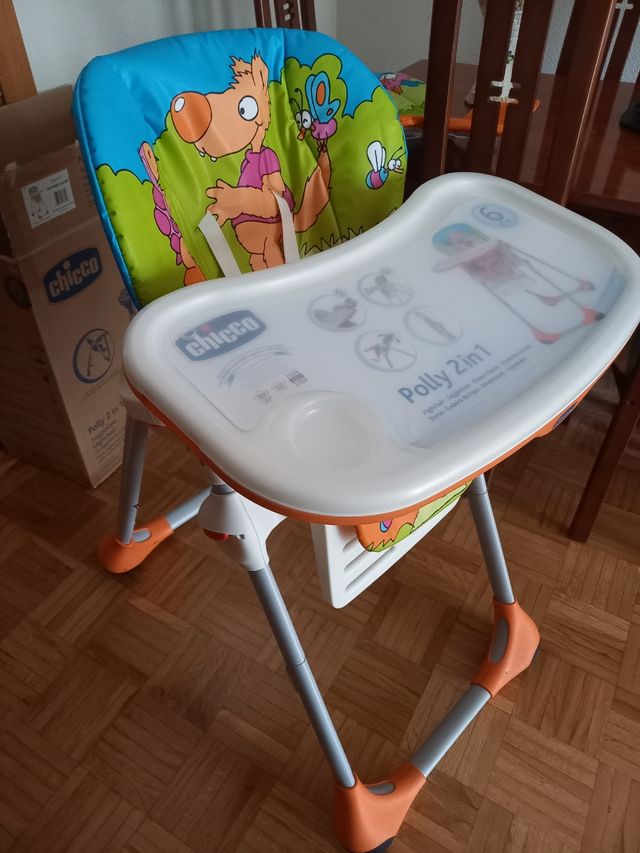 Trona evolutiva Chicco modelo Polly 2 en 1 con un divertido diseño de lobo. - Asiento acolchado con estampado. - Bandeja extraíble. - Estructura plegable.