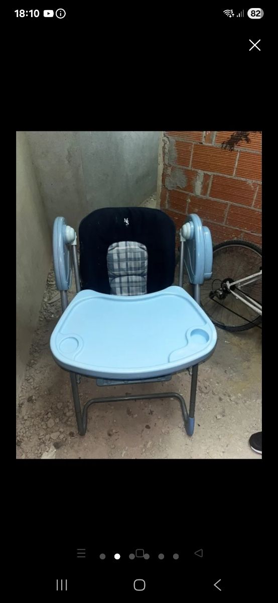 Trona columpio en color azul, ideal para los más pequeños. Es cómoda y fácil de usar. - Bandeja de plástico. - Asiento acolchado con estampado de cuadros. - Reposapiés.