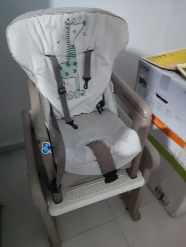 Detalles del productoTrona de bebé con un divertido estampado de jirafa en el cojín.