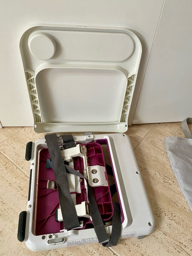 Trona de bebé portátil para llevar a cualquier parte. - Bandeja extraíble. - Arnés de seguridad. - Patas antideslizantes.