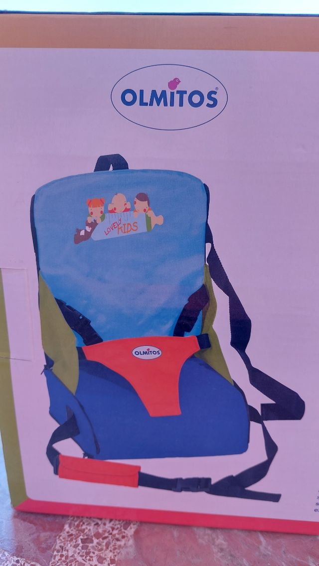 Trona de viaje plegable Marca Olmitos. En muy buen estado. Para poner directamente encima de una silla. Alzador. Con su caja.