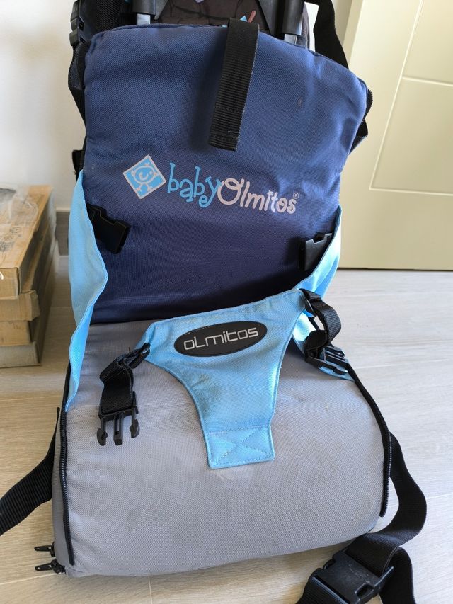 Práctica trona de viaje de la marca Baby Olmitos, ideal para llevar a todas partes. Su diseño es funcional y fácil de usar.