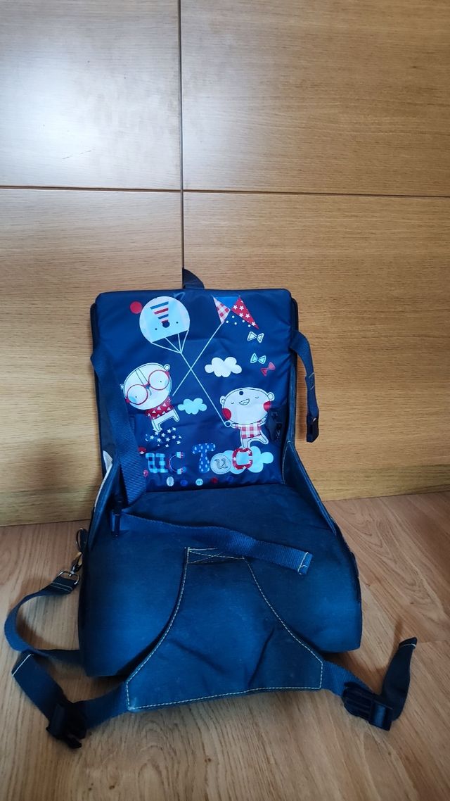 Detalles del productoTrona de viaje ligera ideal para ir a comer a cualquier sitio. Con compartimentos para guardar los baberos, biberones o dosificadores. Se sujeta al respaldo de la silla.