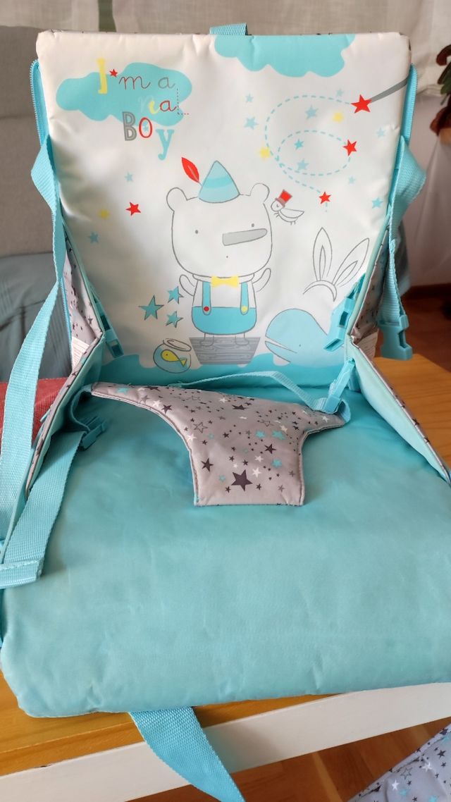 Trona de viaje marca Tuc Tuc, en buen estado. Fácil de transportar en bandolera y se puede desmontar para limpiar.