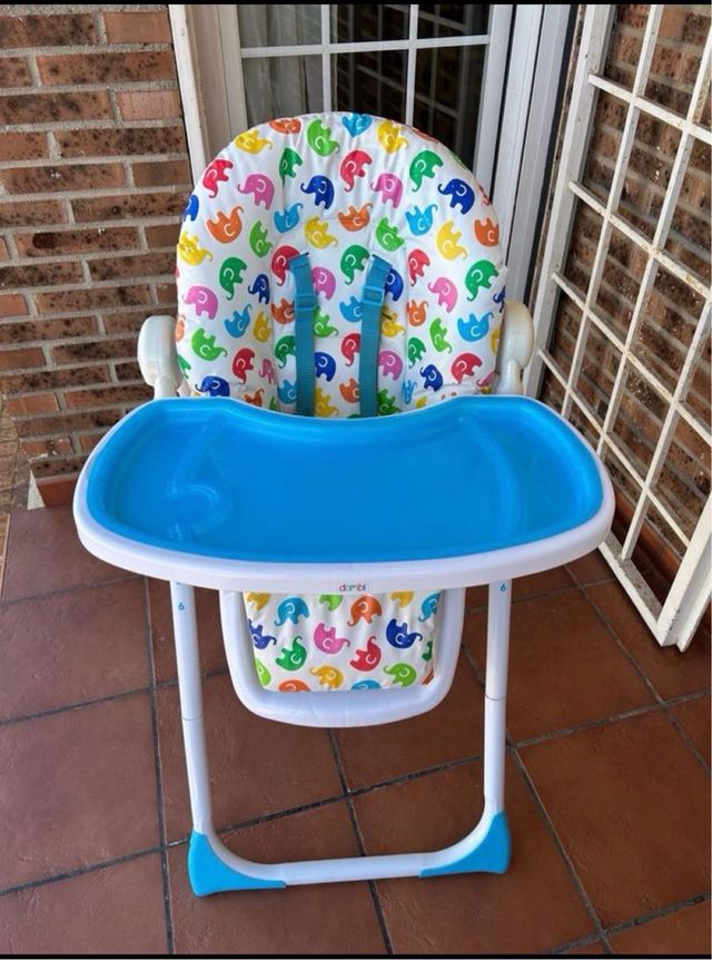 Detalles del productoTrona evolutiva de la marca Dombi, con un divertido estampado de elefantes.