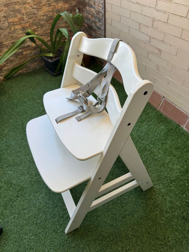 Detalles del productoTrona evolutiva de la marca Hauck, modelo Alpha Plus, en madera de Haya y color blanco. incluye arnés de seguridad de 5 puntos y bandeja para comer o jugar.