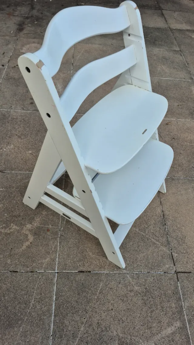 Detalles del productoTrona blanca de la marca Hauck, con diseño similar a la Stokke.