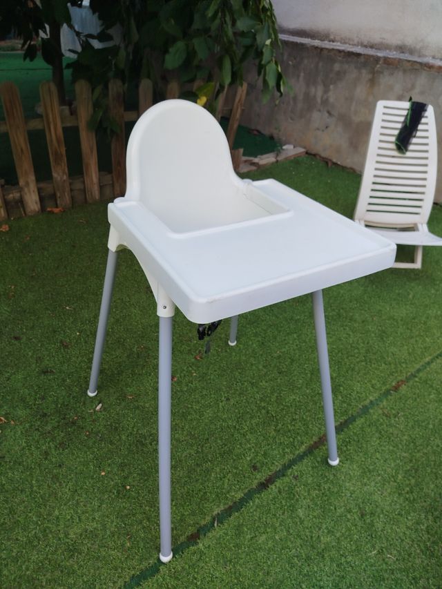 Trona de bebé de la marca IKEA, ideal para las comidas. - Color blanco. - Patas metálicas Desmontables
