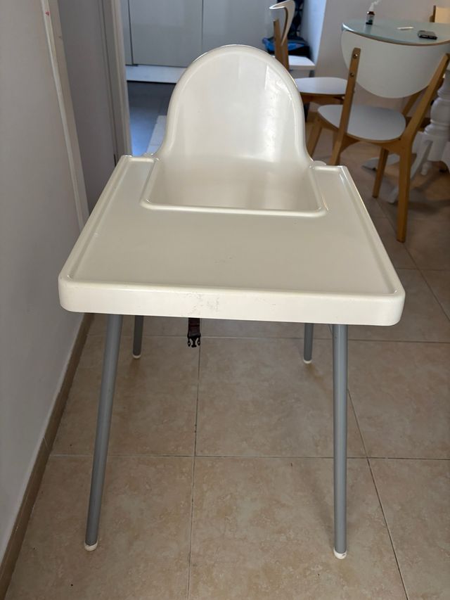 Trona de bebé de la marca IKEA, en color blanco. - Bandeja integrada.