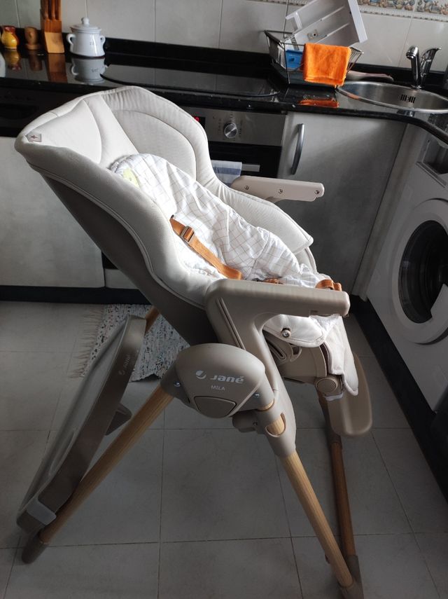 Trona de la marca Jane, modelo Mila, en buen estado. Es cómoda y funcional para los más pequeños. Es evolutiva. - Color neutro. - Diseño moderno.