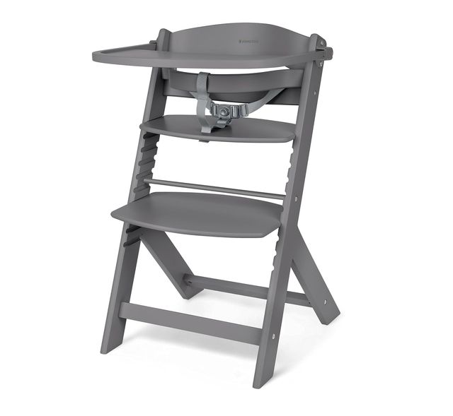 KikkaBoo NORDY Trona de Madera para Bebé, Silla Ajustable hasta 35 kg, Haya Maciza, Bandeja Extraíble, Asiento y Reposapiés Ajustables, Barandilla de Seguridad, Arnés de 3 Puntos, Gris Oscuro