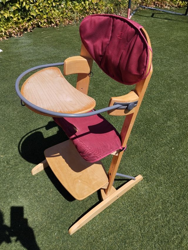 Detalles del productoTrona madera Bebe Confort. Muy práctica porque es regulable en altura y ocupa poco espacio. Se va adaptando al tamaño del niño/a. Apoyo para los pies y bandeja. Cojines desmontables y lavables. Medidas del producto