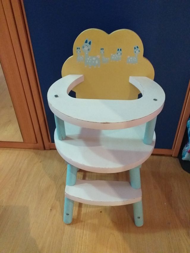 Trona de madera para muñecas de tamaño medio. Esta utilizada.
