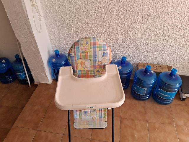 Trona para bebé de la marca Brevi, ideal para las comidas. - Asiento acolchado con estampado. - Bandeja extraíble.