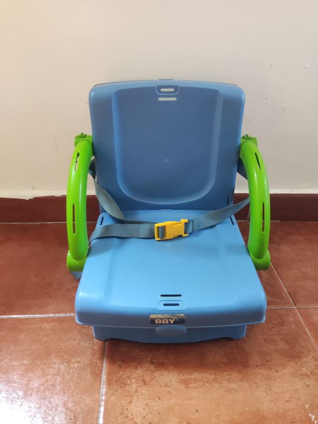 Detalles del productoPreciosa trona portátil de la marca BBY, ideal para llevar a cualquier parte. Es de color azul y verde, y se encuentra en buen estado.