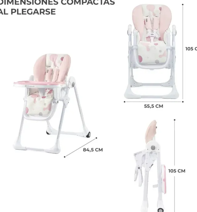 Detalles del productoTrona plegable de color rosa con un divertido estampado.