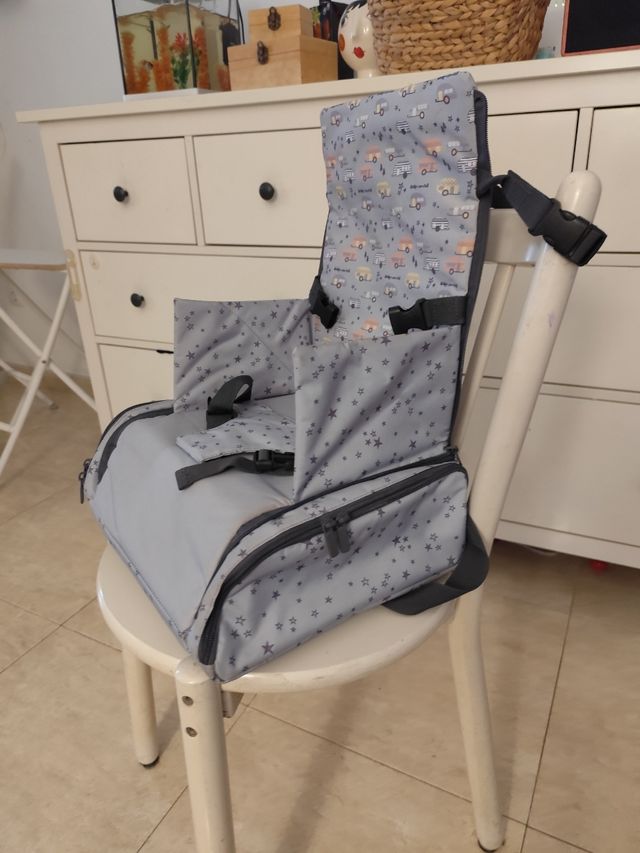 Como nueva , trona portátil con neveritas laterales y porta comida