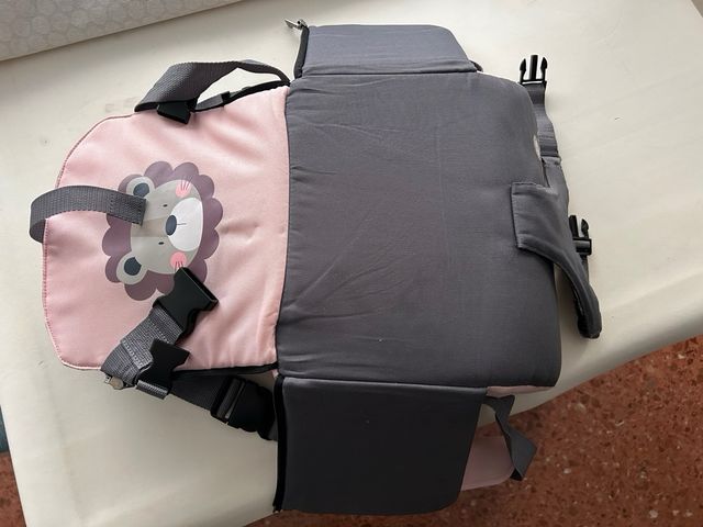 Detalles del productoTrona - elevador portatil de la marca Olmitos y modelo The Little lion, de color rosa y gris oscuro Medidas del producto