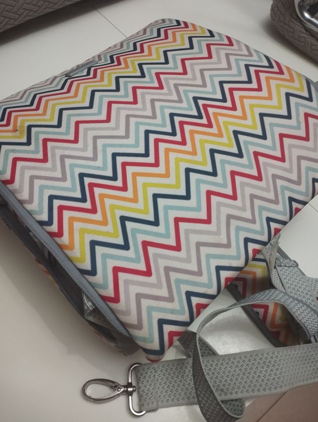Detalles del productoTrona portátil de la marca Tuc Tuc con un divertido estampado de zig-zag multicolor. Es ligera y fácil de transportar.