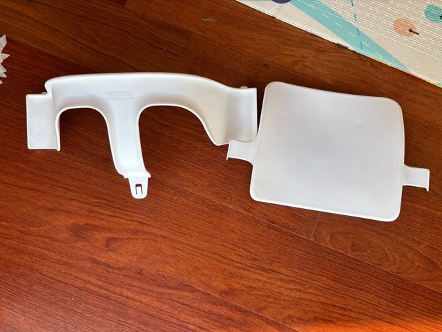 Accesorio para trona Stokke, color blanco. - Pieza de plástico. - Marca Stokke visible. uno de los enganches esta roto pero se sujeta bien