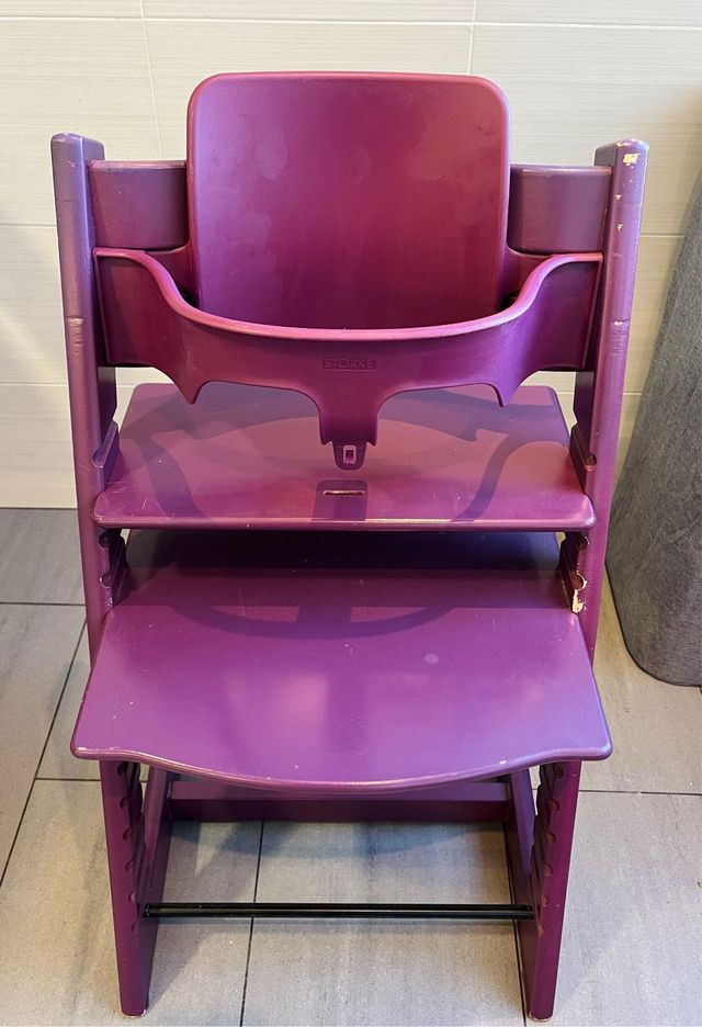 Detalles del productoTrona Stokke en color morado, ideal para acompañar el crecimiento de los más pequeños. Desde 6 meses hasta que uno quiera.