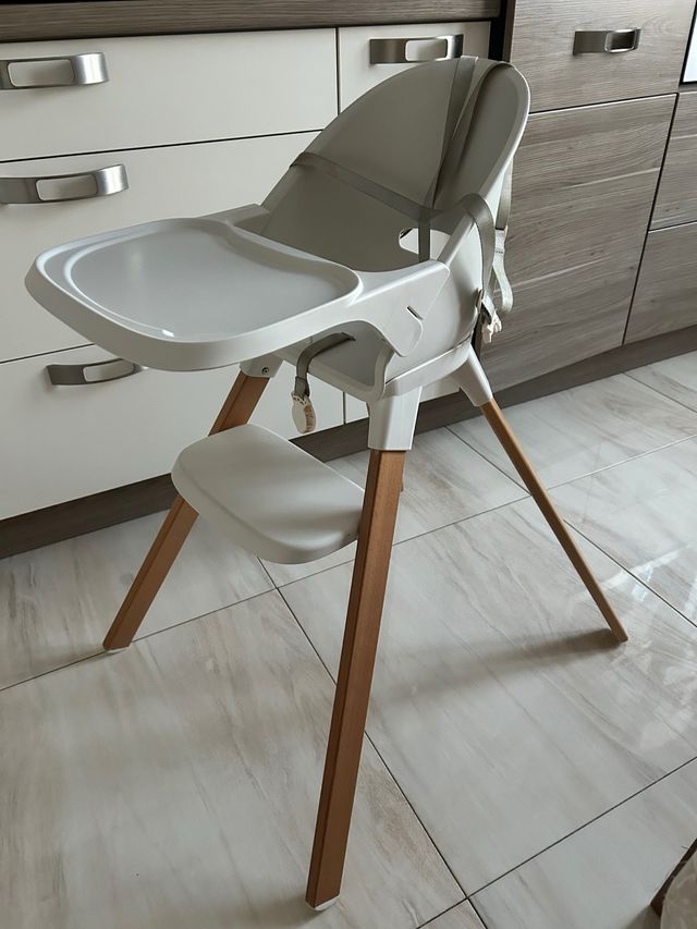 Trona Twistshake de diseño moderno y funcional. - Patas de madera. - Bandeja extraíble. - Arnés de seguridad.