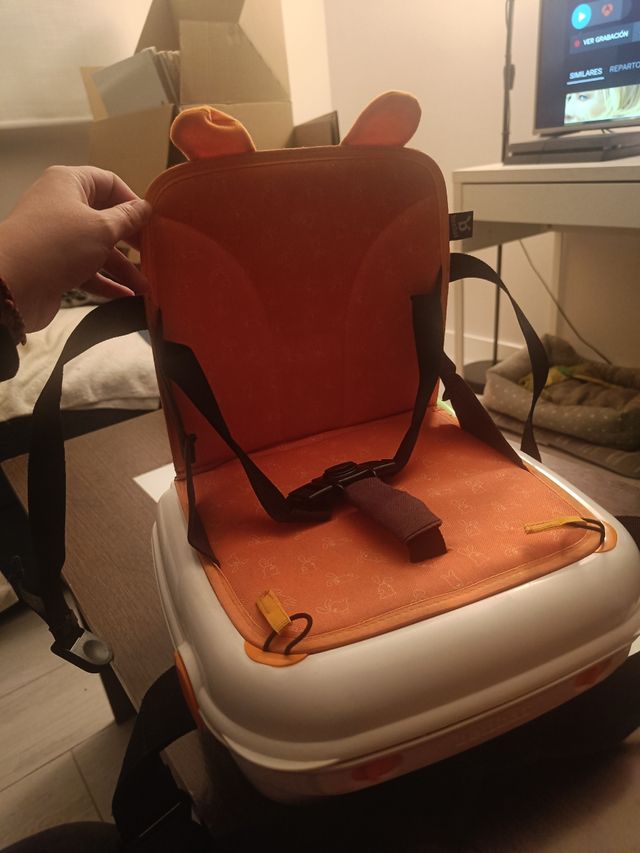 Trona de viaje . Se abre y es maletín también , puedes guardar bastantes cosas del bebé dentro.