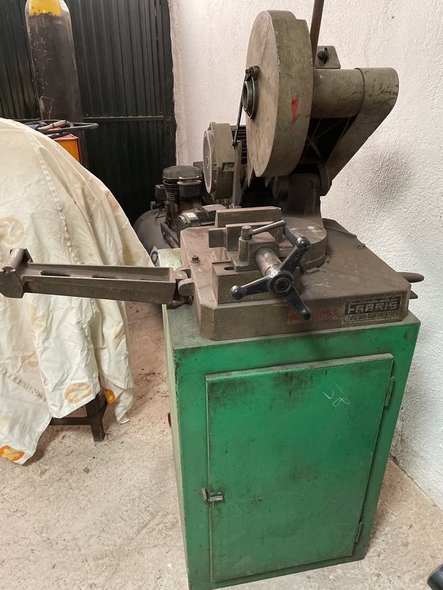 Máquina de corte de disco de 300 mm para hierro. Cuti totalmente funcional y poco trabajada ya que se compró para cortar macollas ya que la máquina de cinta no podía. Va con la bancada metálica que se ve en las fotos(320€ me costó) y 5 discos nuevos. Se vende por cese de actividad. Especificaciones en la ultima foto.