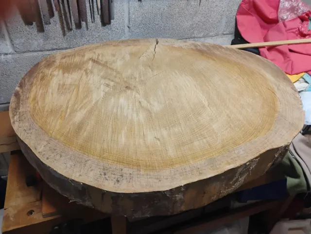 Se vende un gran trozo de madera, ideal para proyectos de bricolaje o decoración. - Madera maciza. - Forma irregular. - Superficie lijada.