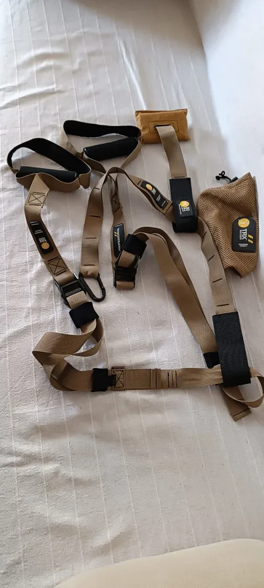 Sistema de entrenamiento TRX original. No se ha utilizado - Correas de entrenamiento ajustables. - Asas acolchadas para mayor comodidad. - Incluye bolsa de transporte.