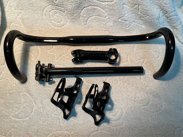 Detalles del productoLote de componentes de bicicleta carbono, tija potencia y manillar personalizado en negro brillo. Lo vendo por abandonar el proyecto.