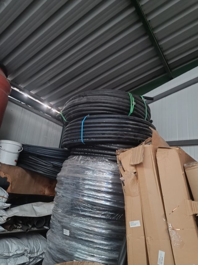 Detalles del productoRollo de tubería de polietileno para uso alimentario. Es de color negro y parece estar en buen estado.
