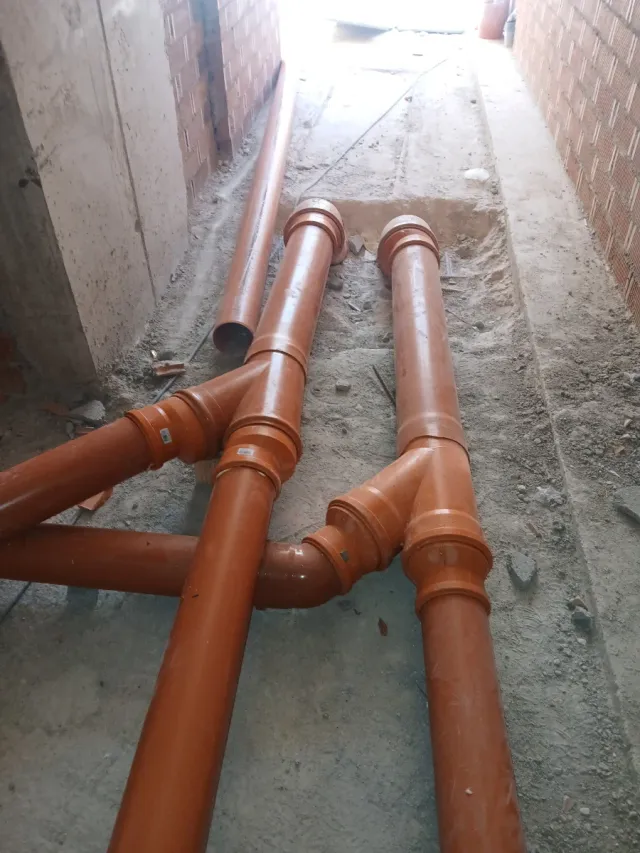 Conjunto de tuberías para instalaciones de desagüe y pluviales. - Material de PVC. - Color naranja. - Varios codos y uniones.