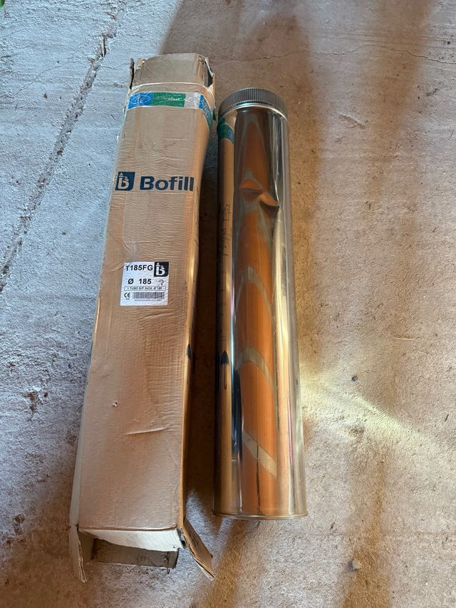 Detalles del productoTubo de chimenea de acero inoxidable de la marca Bofill. Está ligeramente dañado, como se puede apreciar en las imágenes esta un poco abollado.