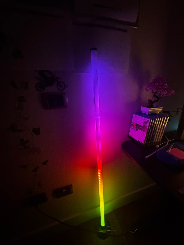 Tubo de luz LED con iluminación RGB. - Diseño moderno y alargado. - Base estable para colocar en el suelo. - Ideal para crear ambientes.
