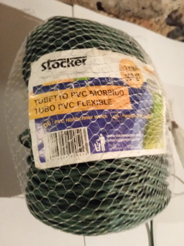 Tubo de PVC flexible y blando de la marca Stocker. - Material: PVC. - Color: Verde. - Uso: Hohl-Schnur (tubo hueco). - Flexible y blando.