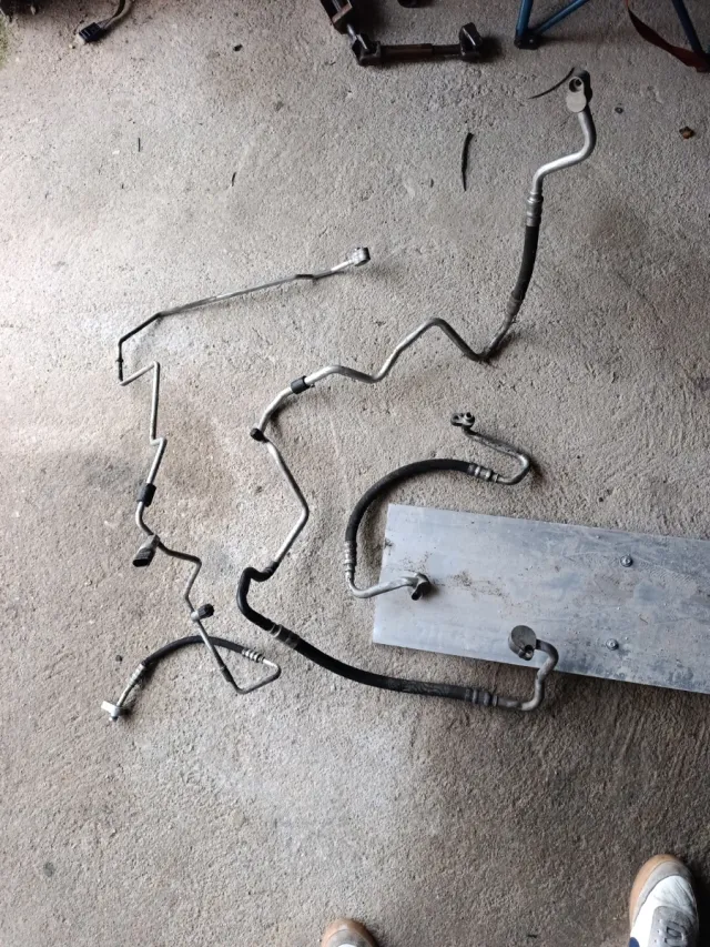 Conjunto de tubos para el sistema de aire acondicionado de un Seat Ibiza 6J. - Tubos metálicos y de goma. - Conexiones incluidas.