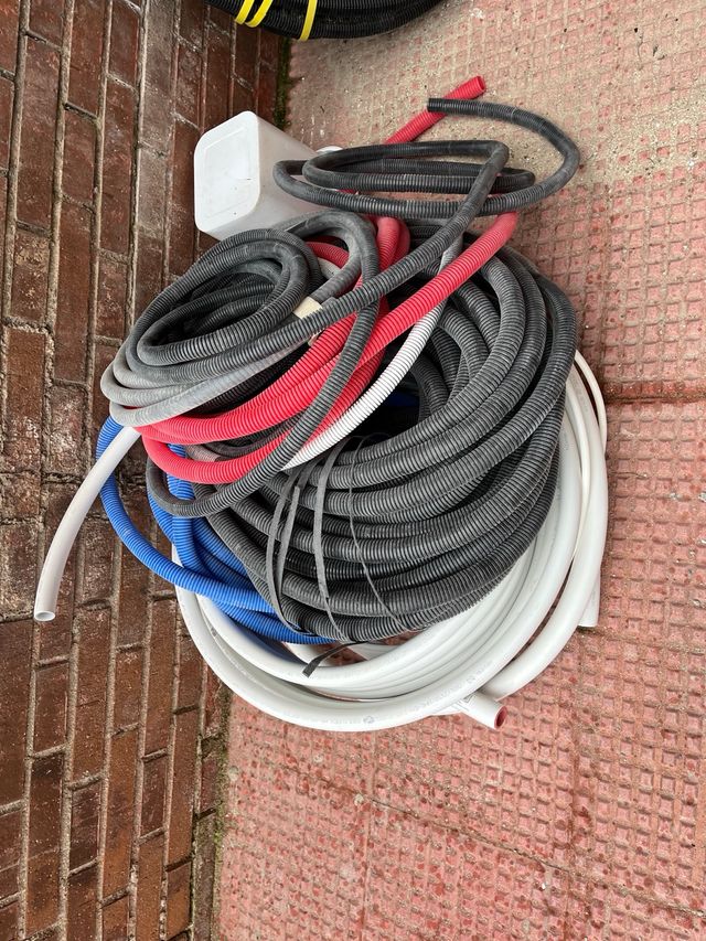 Lote de tubos corrugados de diferentes colores y tamaños. - Tubos de color gris. - Tubos de color rojo. - Tubos de color azul. - Tubos de color blanco.