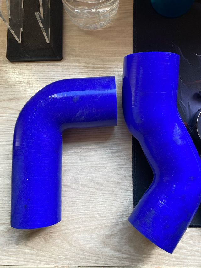 Dos tubos de admisión de silicona en color azul brillante. Son flexibles y resistentes de la marca HIRNER. -Nuevos sin usar -Incluye 4 abrazaderas reforzadas