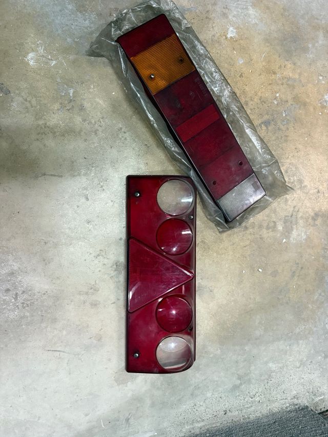 Detalles del productoConjunto de tulipas para remolque, tractora con diseño rectangular y detalles en rojo y ámbar.