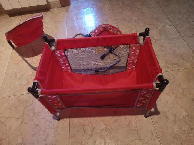 Cuna, trona adaptable a mesa y tumbona conjunto de tres nuevo