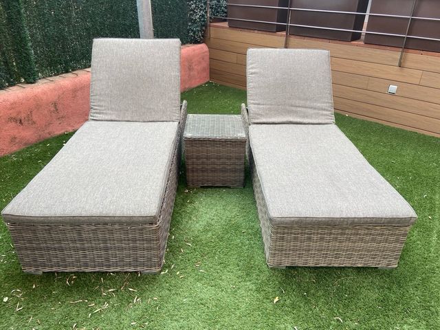 Tumbonas de ratan sintetico con mesa - 2 ud.