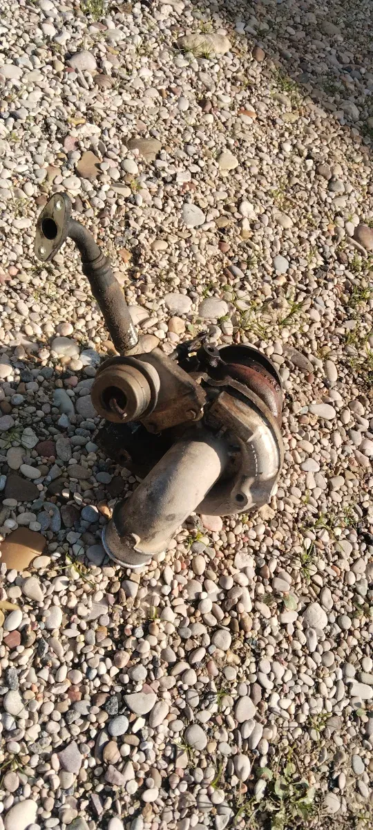 Turbo de segunda mano para vehículos Mercedes. - Pieza de recambio para motor. - Conexión de entrada y salida visibles.
