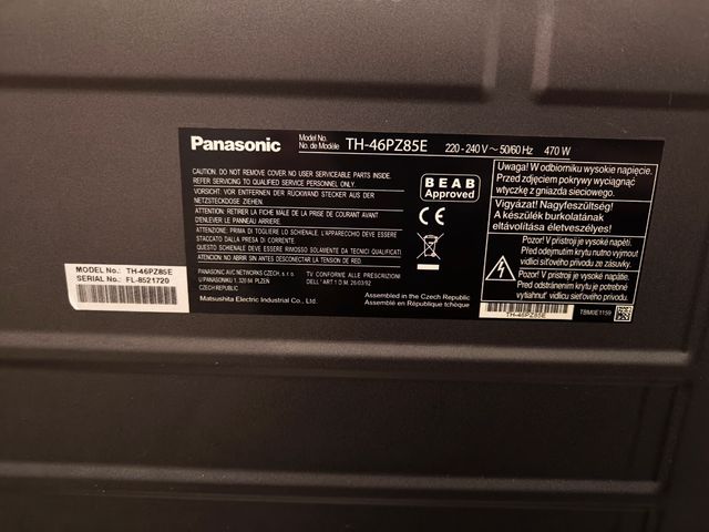 TV Panasonic TH-46PZ85E Plasma 46 Full HD