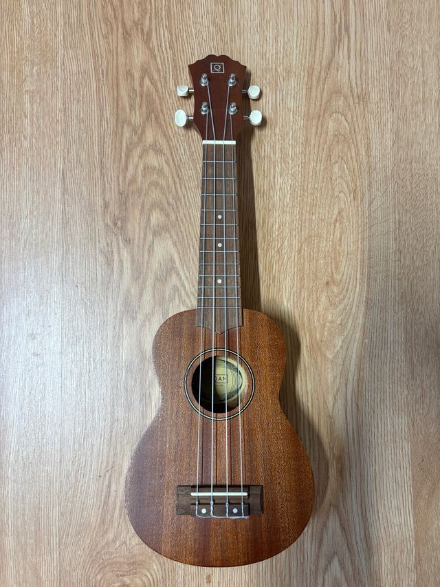 Ukelele soprano OQAN QUK-IOS de color marrón. usado muy pocas veces, incluye funda y caja original pequeña marca trasera (cuarta foto)